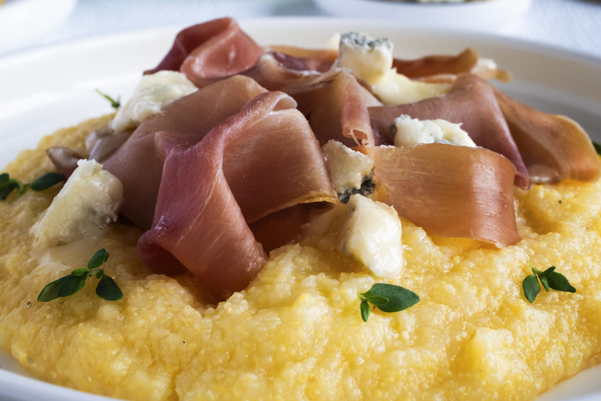 Krémová polenta s gorgonzolou a prosciutto crudo