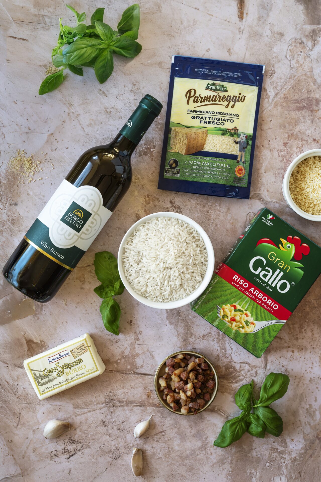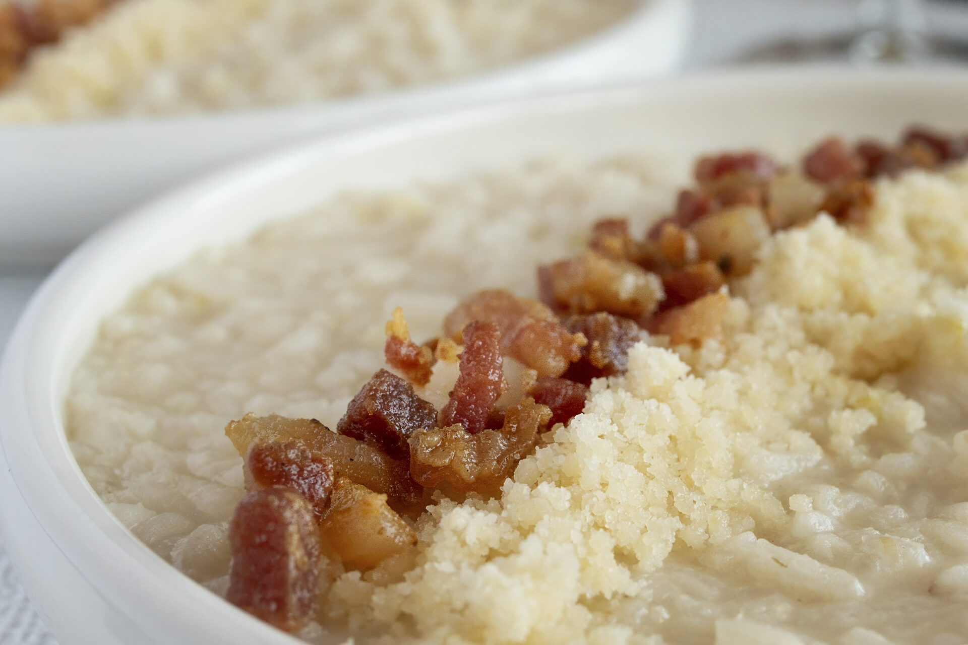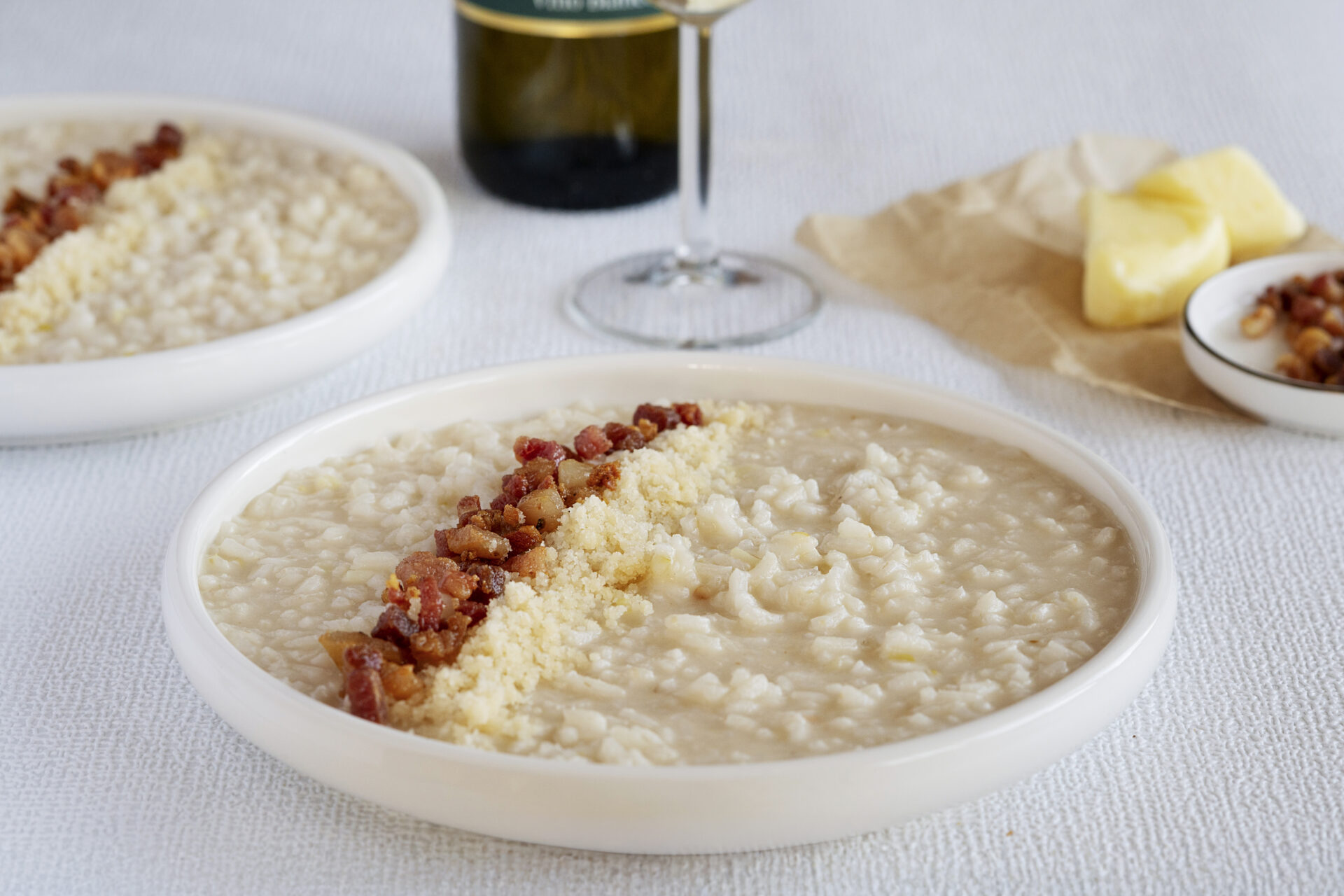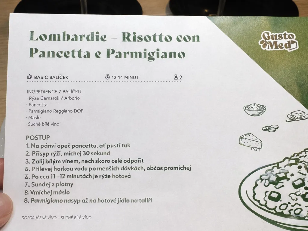 U risotta je klíčová trpělivost a správná práce s tekutinou. Risotto se tradičně připravuje s máslem a trochou vody nebo vína, který rýži dodává chuť a pomáhá vytvořit krémovou konzistenci. Máslo a víno přidávejte postupně a vždy nechte rýži tekutinu vstřebat, než přidáte další. Pancettu opečte zvlášť a přidejte ji až ke konci, aby si zachovala strukturu a chuť. Důležité je také neuspěchat závěrečné zjemnění. Po odstavení z plotny nechte risotto krátce odpočinout a teprve poté ho promíchejte se sýrem. Správně připravené risotto by mělo být krémové, ale ne tekuté, a jednotlivá zrna rýže by měla zůstat lehce na skus. Risotto se podává ihned po přípravě.