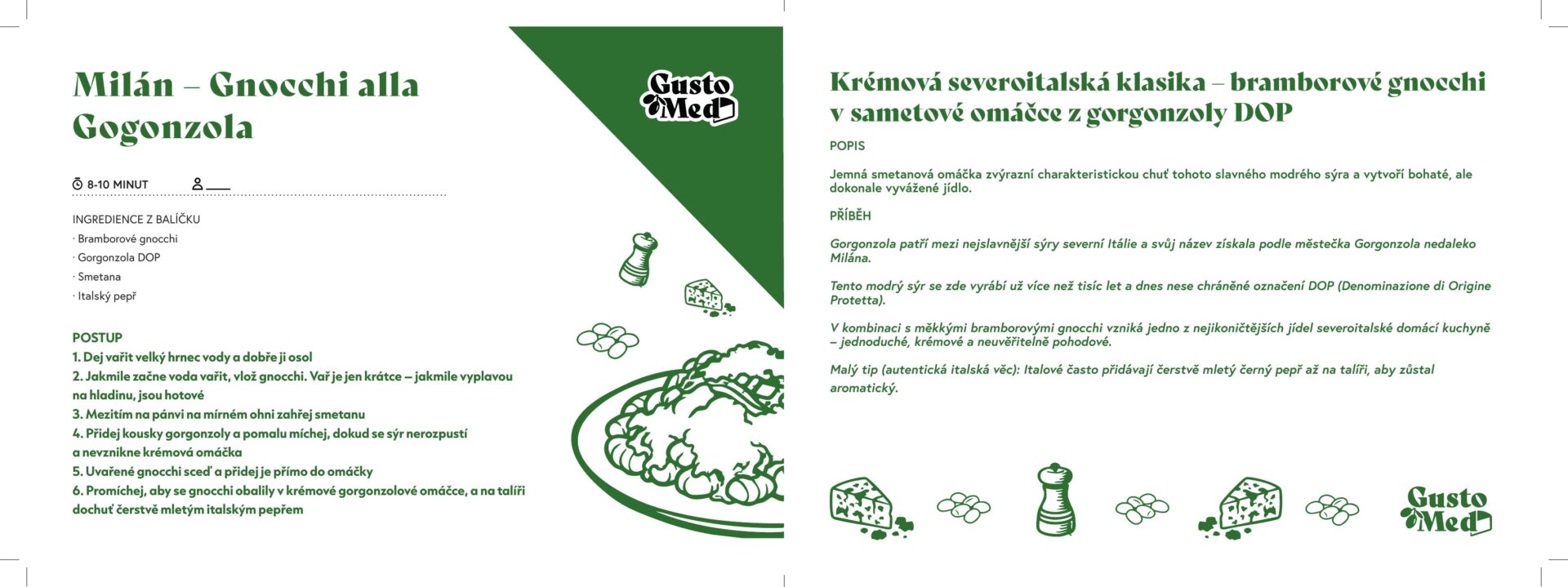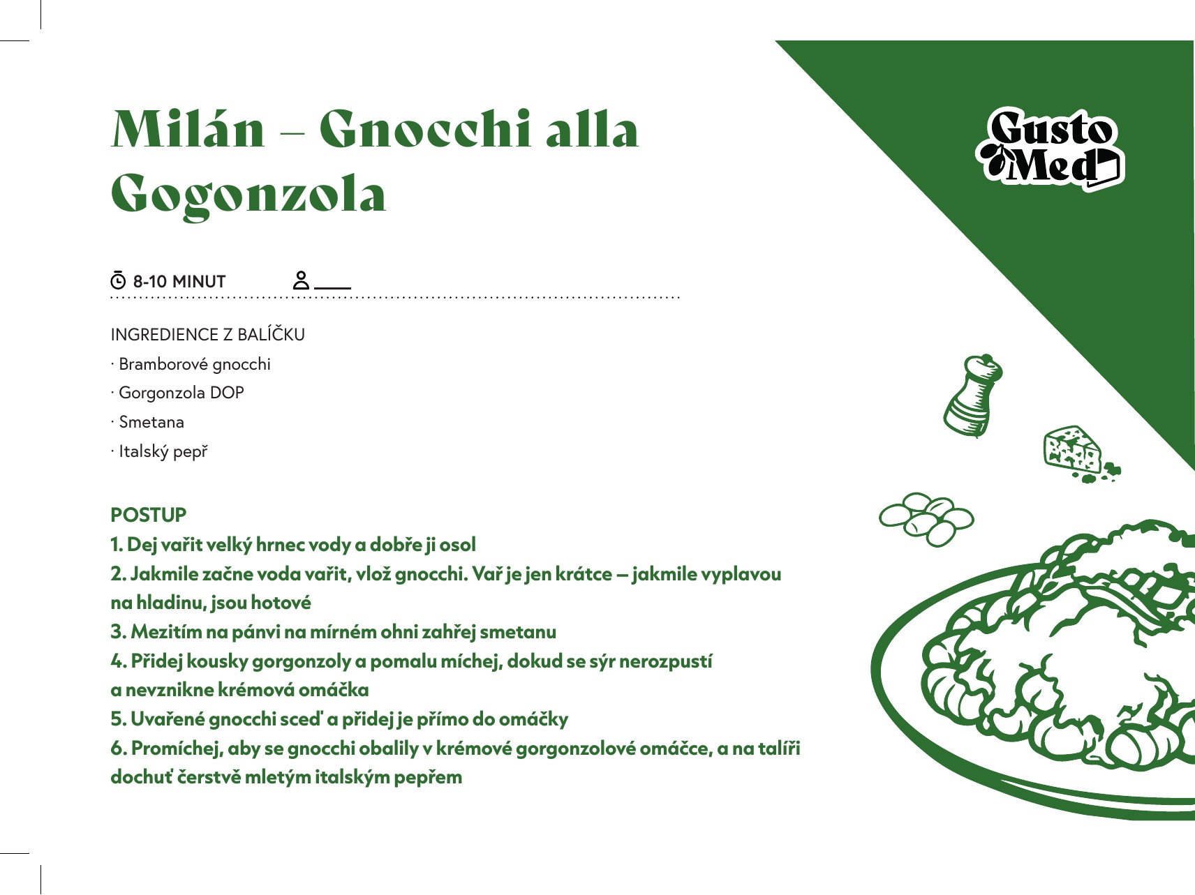 Gnocchi patří mezi nejoblíbenější pokrmy severní Itálie a v oblasti Milána se často podávají s výraznými sýrovými omáčkami.